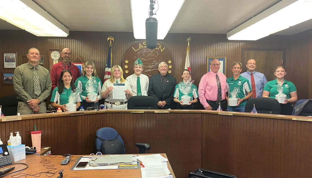 On Tuesday, October 14th, the 2025-26 Lassen County 4-H Ambassadors, Abigail Hemphill and John Ammon, along with past Ambassadors Layton Allen, Molly Dickson, Paiton Hallmark, Samantha Medvin and Russell Mallery, requested the Lassen County Board of Supervisors adopt a proclamation designating National 4-H Week in Lassen County.