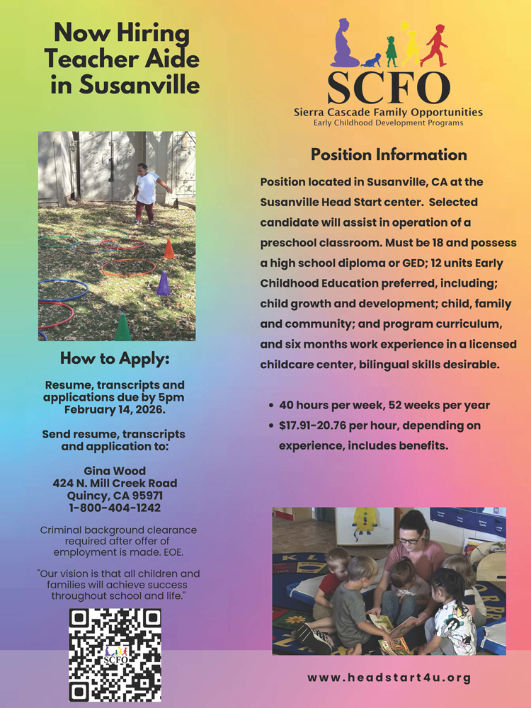 Sierra Cascade Family Opportunities: Teacher Aide/Susanville