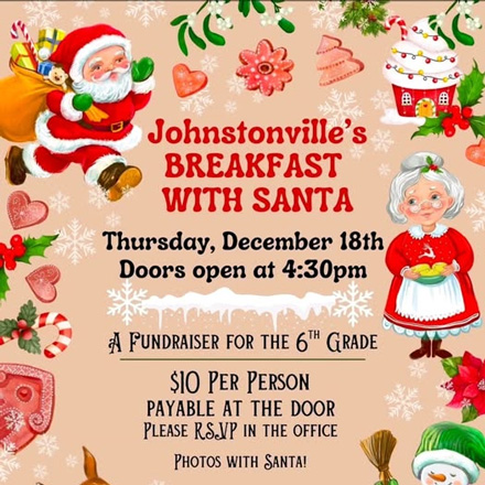 Get ready for some holiday cheer and a delicious meal this afternoon as Johnstonville Elementary School invites the community to their special “Breakfast with Santa” event.