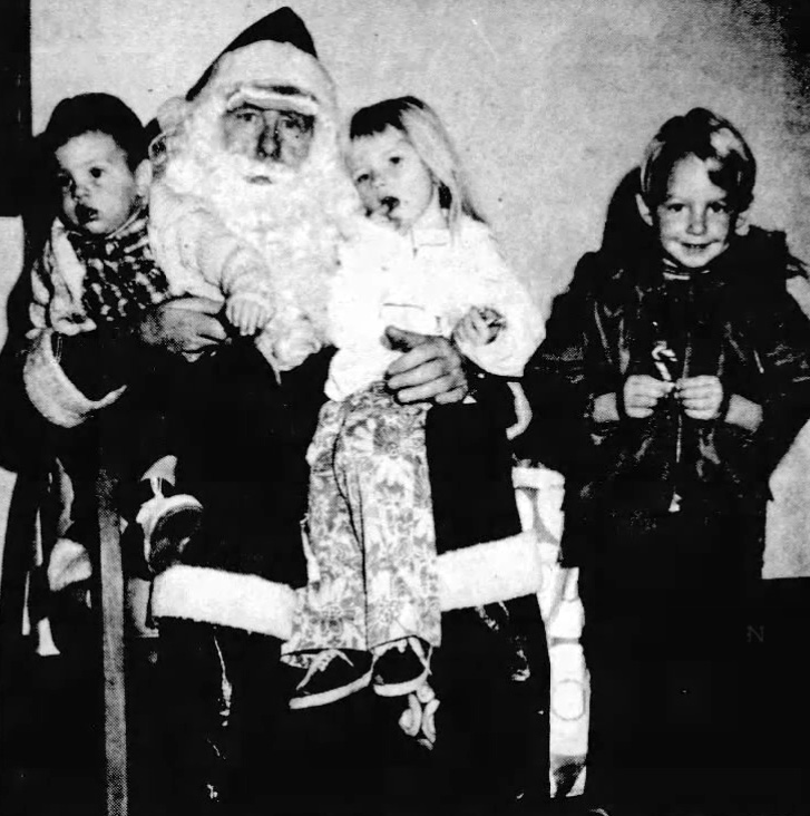 Santa (George Oakley) is pictured above with Jamie Clark, son of Richard and Kristine Clark of Susanville, Kandie Parsons, daughter of Jim and Sharon Parsons of Janesville, and Mitchell De Lapp, son of Mr. and Mrs. John De Lapp of Janesville during their visit last Saturday morning.