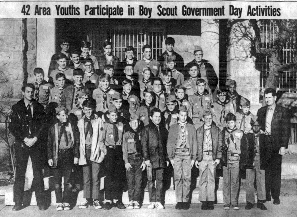 Before attending a noon luncheon at the B&B as guests of the department heads the Scouts were given a tour of the courthouse and the courthouse annex. Sheriff Ben Yeakey made a short talk at the luncheon and Undersheriff Del Gorbet served as master of ceremonies. Scouts participating were: