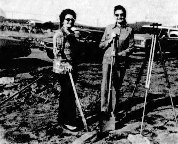 Jeanette Dixon, left, and Susanville Indian Rancheria Chairman Freda Owens broke ground on Thursday for construction of a $135,000 multi-purpose center which is scheduled for completion by next January.