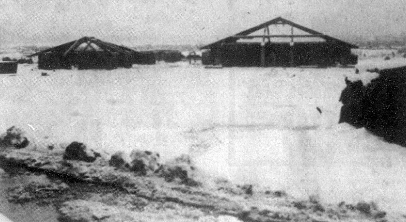 The lower photo shows the gymnasium and locker-shower complex as it appeared recently. (BLM photos).