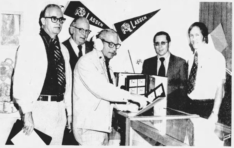 Zuehlke was joined by SMA members Carl Cobel and Cecil Webb. Rieger is reviewing some of the materials in the new student store at Lassen High, Bear Necessities.