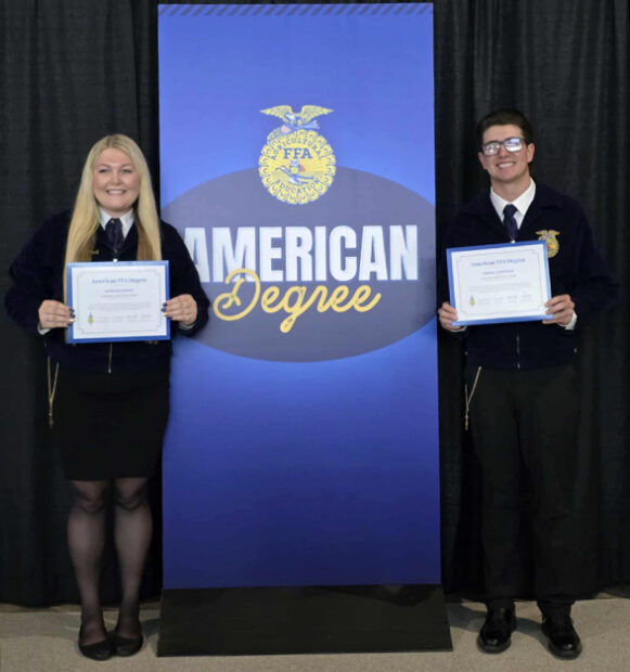 Daniel Davidson and Katelyn Kirack, members of the Susanville FFA chapter, were awarded the American FFA Degree at the 98th National FFA Convention & Expo on November 1st.