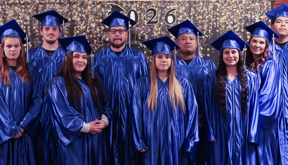 A total of eleven students earned their high school diplomas, with ten graduates in attendance at the ceremony. Graduates recognized included Beauregard Beavers, Kimberly Calvillo, Mary Jane Cannon Wilson, Ashlea Cotner, Makia Hefner, Erica Holt, Joseph McKernan, Frankie Perez, Jessica Speed Roberts, Andrea Teter, and David Valdivia.