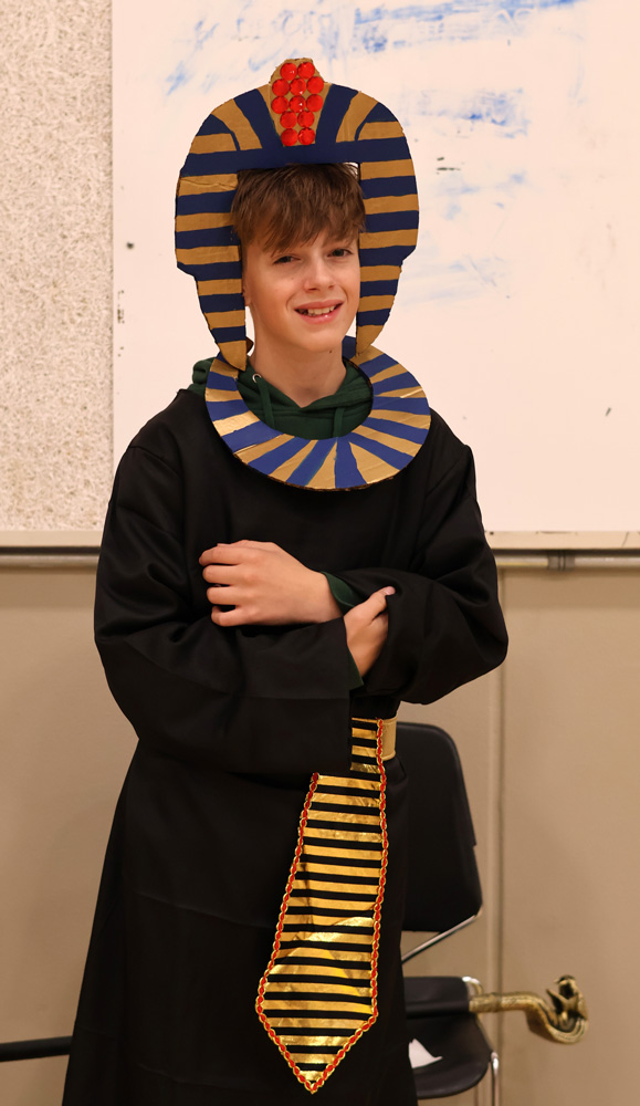 During the exhibition, students stepped into character as Egyptian gods, goddesses, pharaohs, and other iconic historical figures. Each participant delivered a researched presentation while dressed in costume, bringing ancient history to life for their peers and visitors.