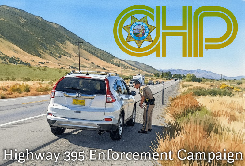 The California Highway Patrol’s Susanville Area Office recently wrapped up a highly successful 90-day enforcement campaign along U.S. Highway 395, a critical corridor stretching from the Oregon border down to the Nevada line through Lassen County and the Honey Lake Valley.