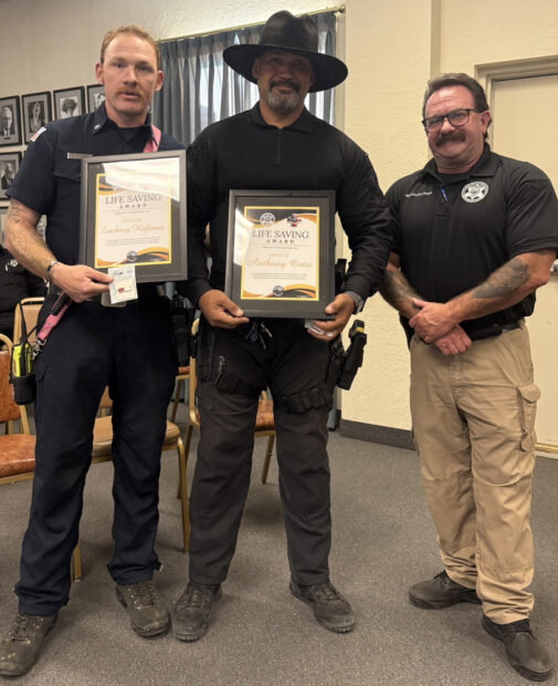 In a separate, but equally important recognition, Chief Bengoa-Bollinger presented Engineer Zachary Hoffman of the Susanville Fire Department and Officer Anthony Ortiz of the Susanville Police Department with Life Saving Awards.